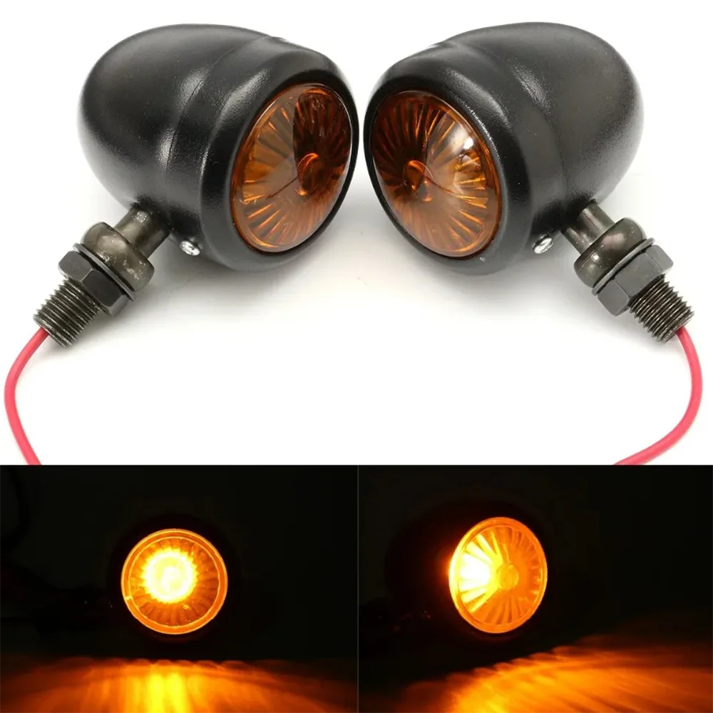 La forma a proiettile dell'indicatore di direzione è abbinata a un telaio nichelato e a una testa della lampada circolare.
