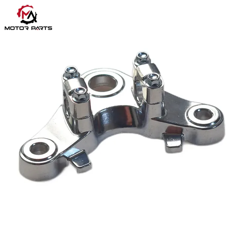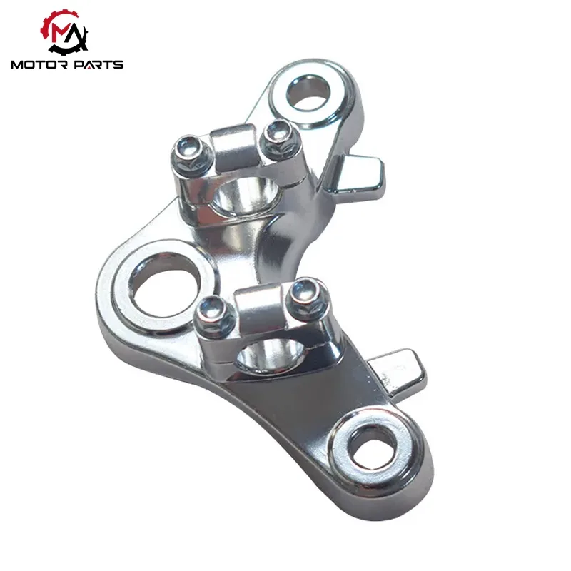 Nel sistema front-end della motocicletta CG125, la piastra di collegamento superiore è il componente portante principale che collega la forcella anteriore, l'ammortizzatore e il telaio. La piastra di collegamento superiore per motocicletta Honda CG125 adotta il design strutturale standard del settore "a forma di boomerang", ottenendo una distribuzione stabile del carico e un controllo preciso dello sterzo attraverso il posizionamento dei fori progettato scientificamente.