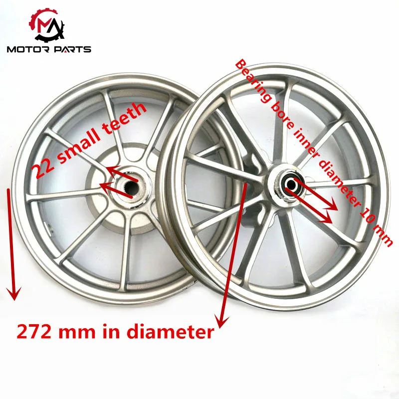 R: Sia le ruote anteriori che quelle posteriori sono adatte a pneumatici 90/90-10 50J.