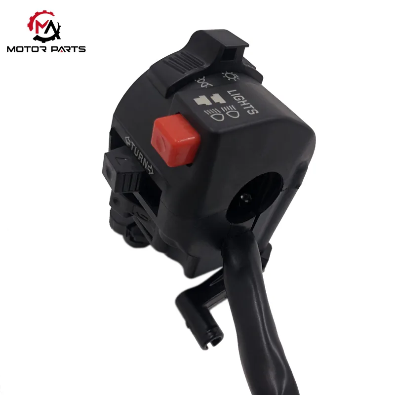 Max Trading produce interruttori a maniglia per accessori moto Honda Wave110. L'interruttore sinistro integra gli indicatori di direzione, gli abbaglianti/anabbaglianti, il clacson e le funzioni di regolazione dell'aria, insieme a un meccanismo di interblocco di sicurezza collegato al freno. L'interruttore destro include l'arresto del motore, l'avviamento elettrico, il controllo dei fari e integra l'acceleratore e il freno anteriore. Il prodotto funziona con DC12V, è compatibile con manubri standard da Φ22mm e presenta un guscio in plastica tecnica ABS ignifuga UL94 V-0. I contatti sono realizzati in materiale AgNi10 e il cablaggio utilizza filo di rame stagnato multifilo da Φ0,3 mm, rendendolo compatibile con l'intera serie WAVE110 di motociclette underbone. Vengono fornite le istruzioni di installazione, comprese le operazioni di spegnimento, la verifica del modello e la fotografia del cablaggio. Questo prodotto è un accessorio interruttore manubrio dedicato per le motociclette Honda Wave110.