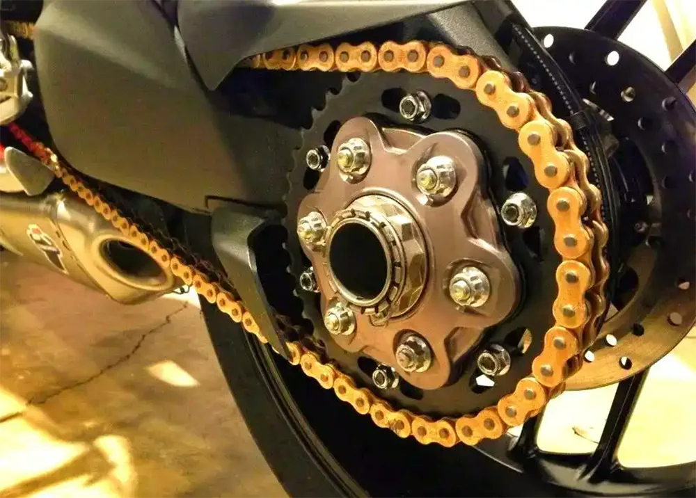 Tra gli schemi di trasmissione di potenza di molte motociclette, il sistema di trasmissione a catena e pignone è diventato la scelta preferita per molte motociclette grazie alle caratteristiche semplici ed efficienti. Ha un'elevata efficienza di trasmissione e un peso complessivo leggero, particolarmente adatto per i tipi di veicoli che richiedono una coppia elevata. Presenta però anche alcune limitazioni, come l’usura e il rumore durante il funzionamento. Durante il processo di trasmissione della potenza del motore alle ruote posteriori, è possibile ottenere l'amplificazione della coppia e la regolazione del rapporto di riduzione regolando il rapporto dei denti degli ingranaggi anteriore e posteriore.