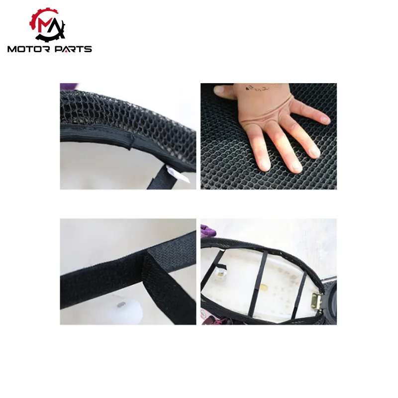 La fodera per cuscino del sedile per motocicletta a nido d'ape per protezione solare presenta un design con cinghia elastica regolabile, che gli consente di adattarsi saldamente ai sedili del conducente e del passeggero delle auto, nonché ai sedili elettrici e delle moto. Può essere facilmente adattato anche a sedie da pranzo, divani e sedie da ufficio. Una volta fissato, rimane saldamente in posizione, offrendo un'adattabilità eccezionale.