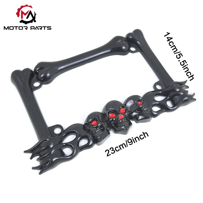 Il design innovativo utilizza la tecnologia dell'altorilievo per creare forme realistiche del cranio, integrando abilmente elementi oscuri come ossa incrociate, pugnali e fiamme, mettendo in mostra l'affilatura dei denti facciali del cranio e la profondità delle orbite, offrendo un effetto visivo stereoscopico altamente dinamico. Prendendo come esempio i prodotti personalizzati della piattaforma Etsy, i cristalli Swarovski sono accuratamente incastonati negli occhi del teschio, offrendo 27 scelte di colori abbaglianti che non solo mostrano una personalità unica, ma conferiscono anche al telaio targa motociclistico ABS standard americano uno straordinario impatto visivo.